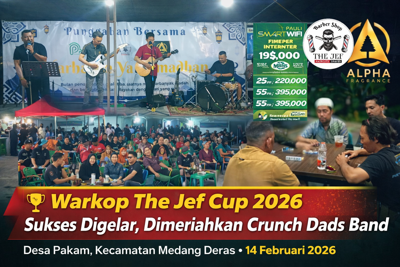 Desa Pakam, penanasional.id | Kecamatan Medang Deras, 14 Februari 2026 — Kegiatan Warkop The Jef Cup 2026 resmi digelar di Pajak Sore, Desa Pakam, Kecamatan Medang Deras, pada Sabtu malam. Turnamen Open Dam Batu ini merupakan bagian dari rangkaian acara yang dijadwalkan berlangsung selama tiga hari.