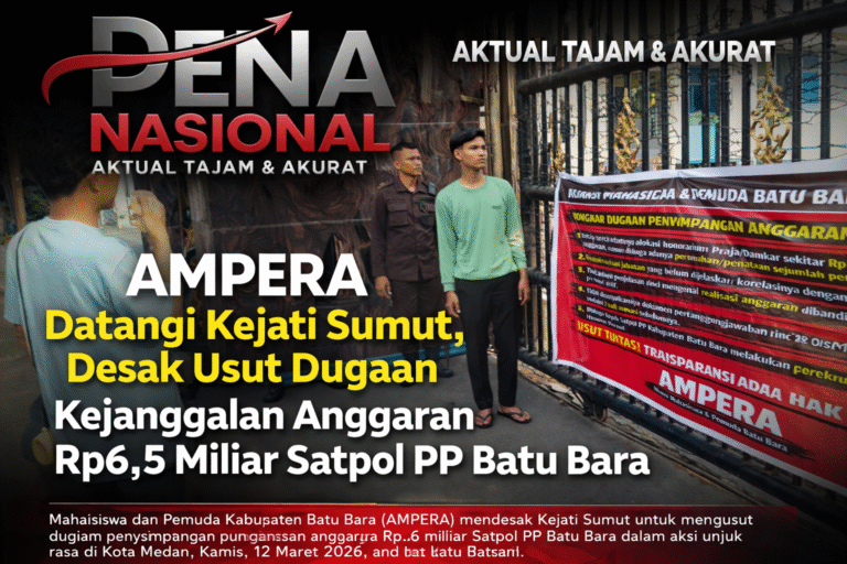 Batu Bara – Gelombang protes mahasiswa dan pemuda dari Kabupaten Batu Bara kembali mengemuka. Aliansi Mahasiswa dan Pemuda Kabupaten Batu Bara (AMPERA) menggelar aksi unjuk rasa di depan kantor Kejaksaan Tinggi Sumatera Utara di Kota Medan, menuntut aparat penegak hukum mengusut dugaan kejanggalan anggaran di tubuh Satuan Polisi Pamong Praja Kabupaten Batu Bara. Kamis, 12 Maret, 2026