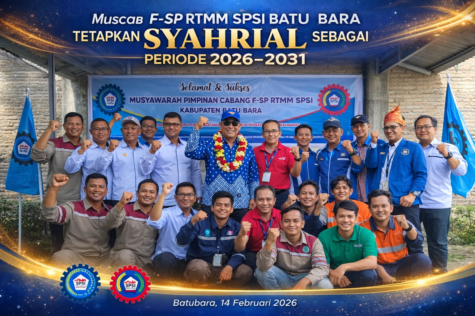 Batubara, penanasional.id | F-SP RTMM SPSI Kabupaten Batu Bara secara resmi menetapkan Syahrial sebagai Ketua Pimpinan Cabang periode 2026–2031 melalui Musyawarah Cabang (Muscab) yang digelar pada Jumat, 14 Februari 2026, bertempat di Noah Coffee Kuala Tanjung. (RABU, 25/02/2026)