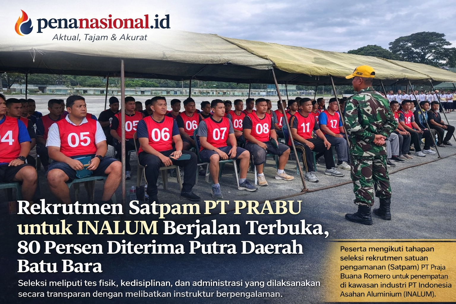 Batu Bara, penanasional.id – Proses rekrutmen tenaga satuan pengamanan (Satpam) untuk penempatan di lingkungan PT Indonesia Asahan Aluminium yang dikelola oleh PT Praja Buana Romero dilaksanakan secara terbuka, transparan, dan melibatkan berbagai unsur masyarakat. (Jumat, 06/03/2026)